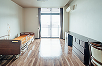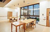 居室から一歩出ていただくとリビングが広がっており、他入居者様とコミュニケーションが図りやすい作りとなっております。また、食堂には中庭があり、心地よい空間と暮らしを豊かに演出します。すべての居室からトイレや浴室へのアクセスも良く機能的に充実しております。