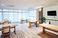 居室から一歩出ていただくとリビングが広がっており、他入居者様とコミュニケーションが図りやすい作りとなっております。また、食堂には中庭があり、心地よい空間と暮らしを豊かに演出します。すべての居室からトイレや浴室へのアクセスも良く機能的に充実しております。