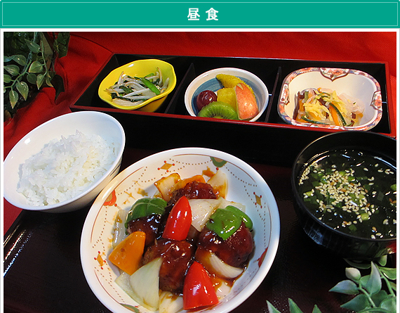 あがたメディカルホームでは、施設内の厨房にて栄養士、調理師が栄養のバランスのとれた安全でおいしいお食事をご用意します。
